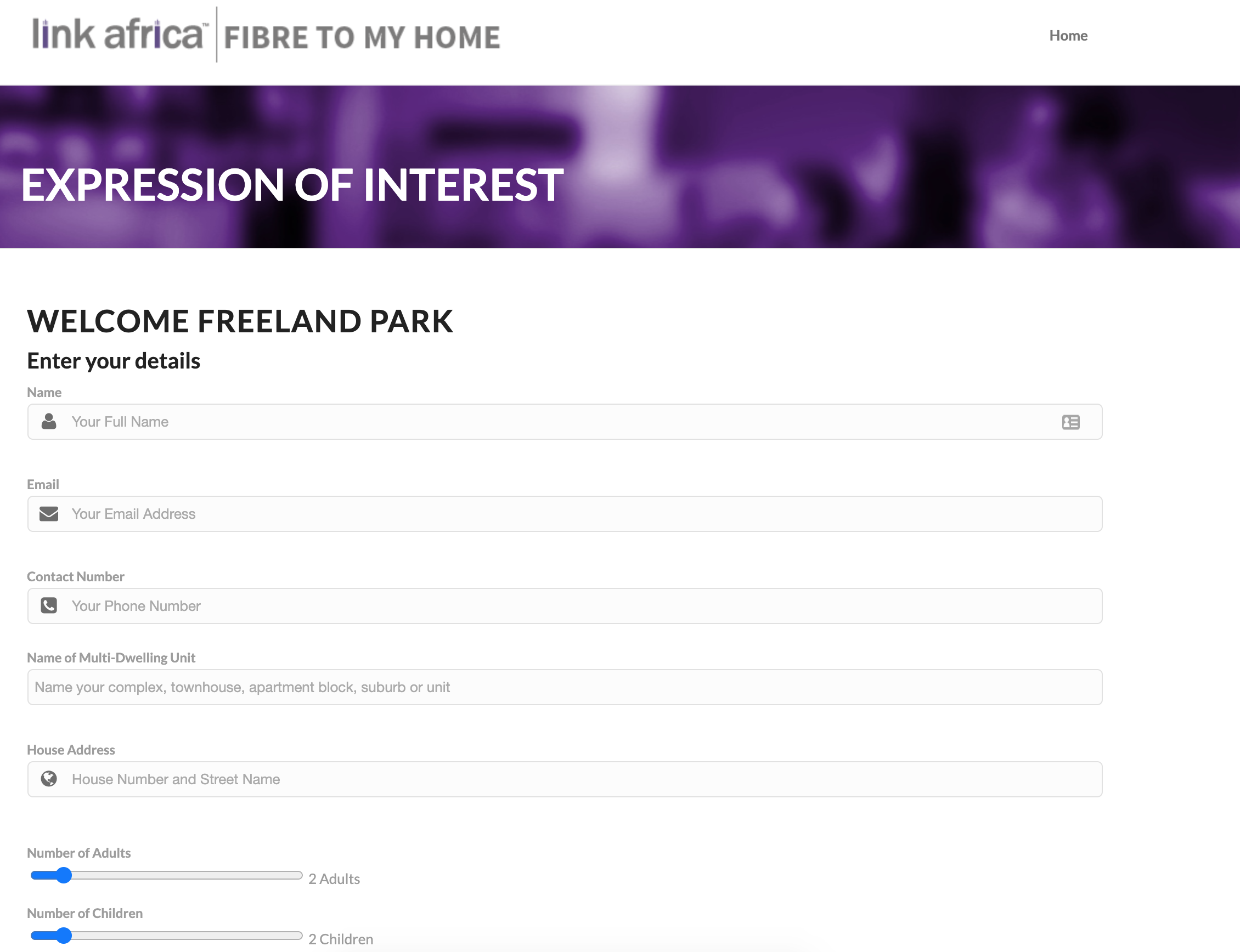 I am sorry Link Africa is not in a position to rollout in Freeland Park right now.